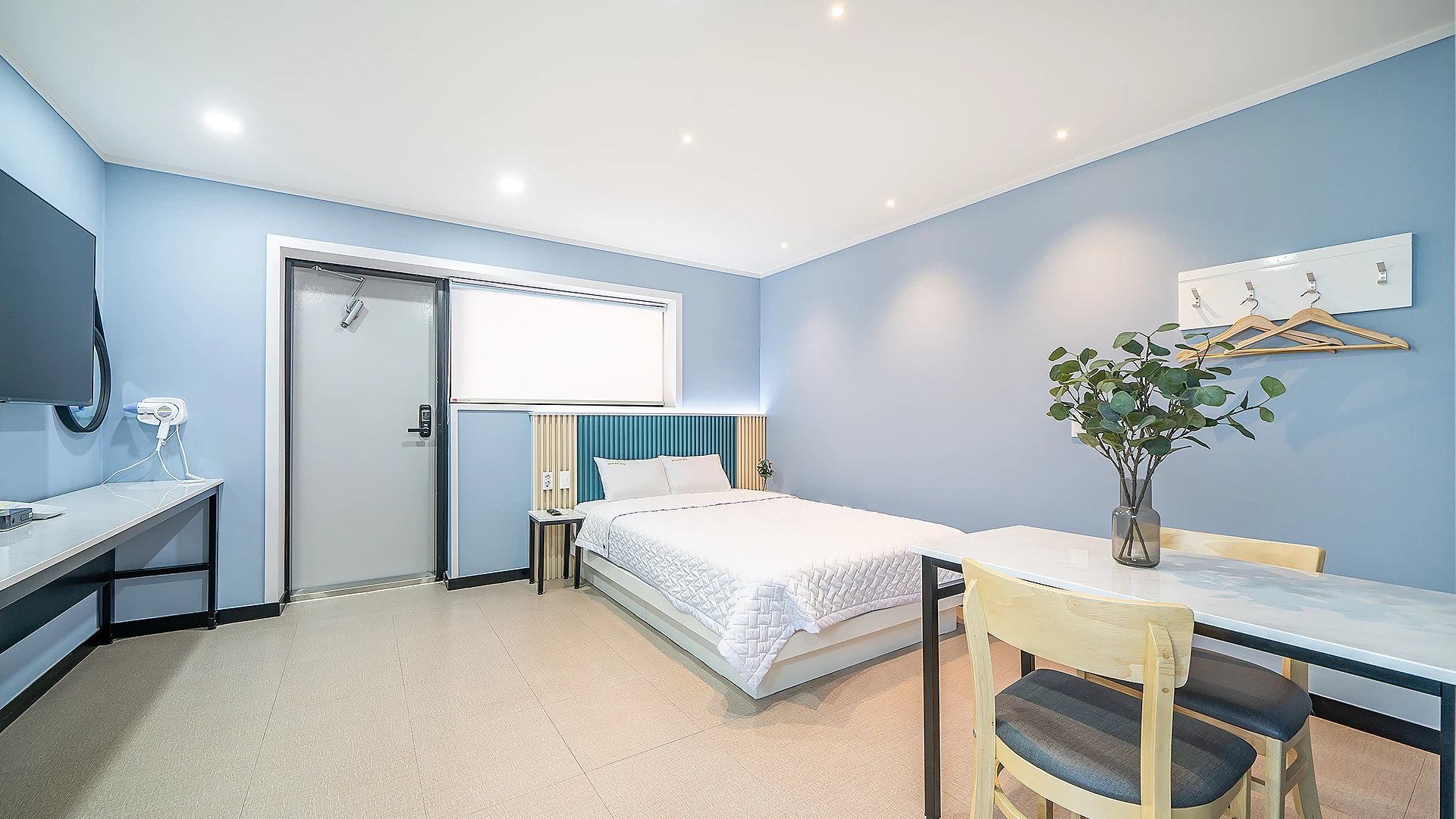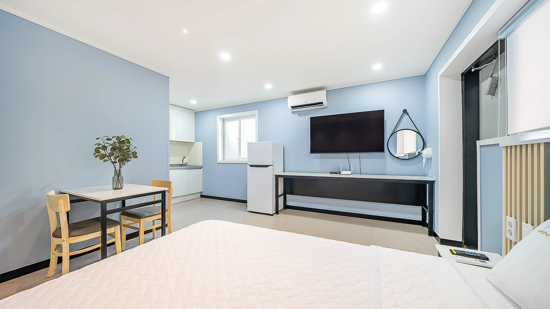- 집기품목 : TV, 금연, 냉장고, 드라이기, 린스, 바디워시, 샴푸, 에어컨, 와이파이, 인덕션, 전기밥솥, 취사시설/도구, 치약, 타월, VOD, 욕실용품