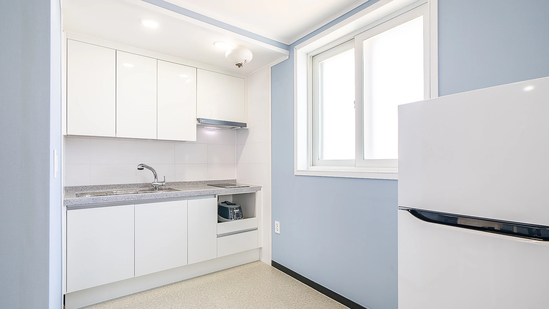 - 집기품목 : TV, 금연, 냉장고, 드라이기, 린스, 바디워시, 샴푸, 에어컨, 와이파이, 인덕션, 전기밥솥, 취사시설/도구, 치약, 타월, VOD, 욕실용품